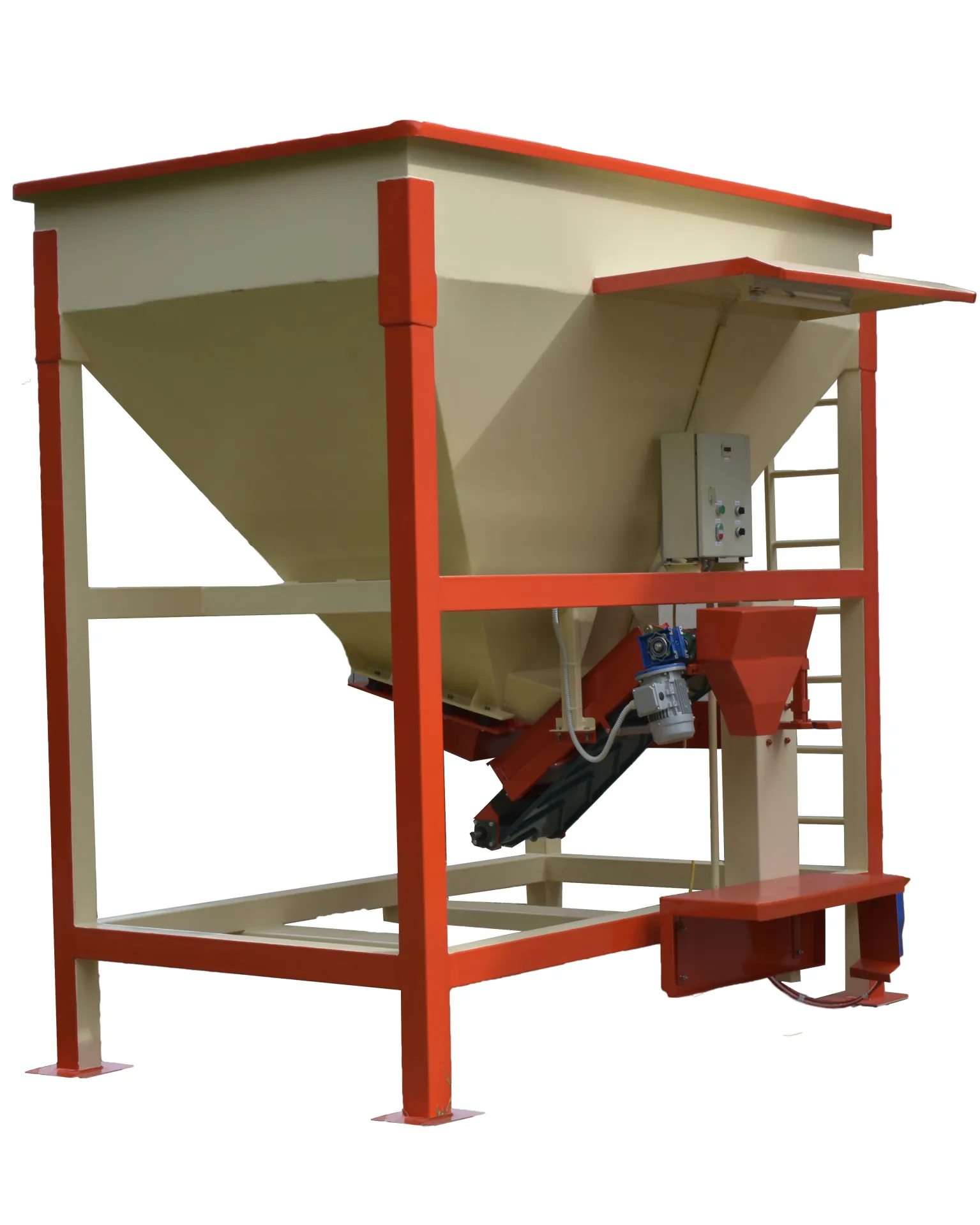 Αποτελείται από Σιλό Χωρητικότητας 4,00 m³, Κατασκευασμένο από Λαμαρίνα Πάχους 6 mm, που Εξασφαλίζει Μεγάλη Αντοχή και Σταθερή Ροή Υλικού. Η Τροφοδοσία του Αδρανούς Υλικού Γίνεται Μέσω Δονητικού Τροφοδότη, ο Οποίος Οδηγεί το Υλικό σε Ειδικά Μελετημένη Μεταφορική Ταινία, Κατάλληλη για Οποιοδήποτε Αδρανές Υλικό, με Ελαχιστοποιημένες Φθορές και Χαμηλές Ανάγκες Συντήρησης.
